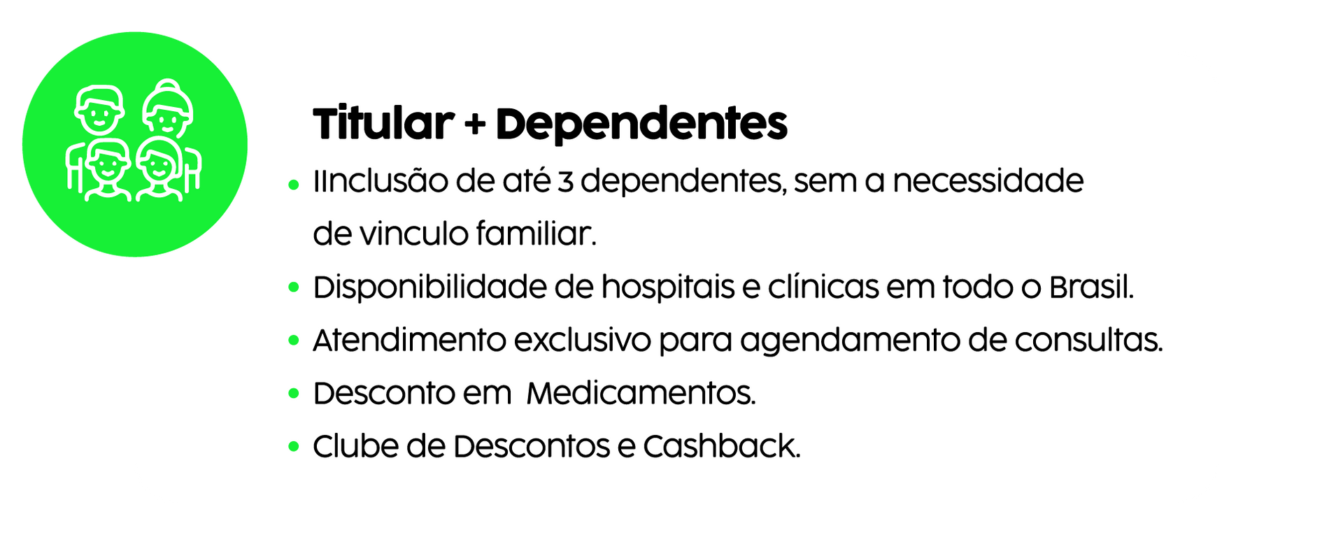 Programas com Inclusão de até 3 dependentes: Cuide da saúde de quem você desejar, com ou sem vínculo familiar, com descontos especiais.